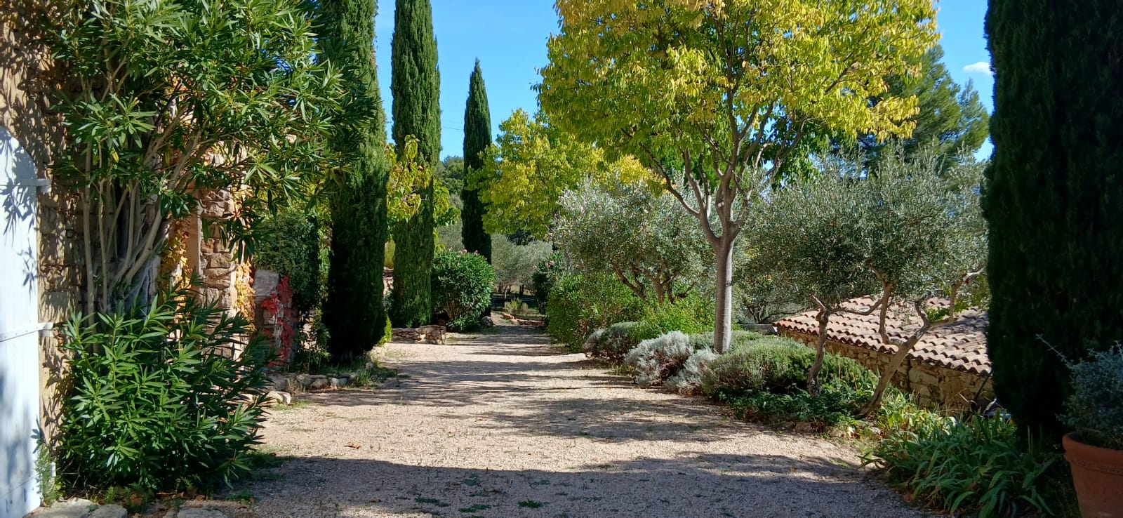 Le vaste jardin ombragé, aménagé en restanques, est une véritable immersion dans la douceur de vivre provençale.